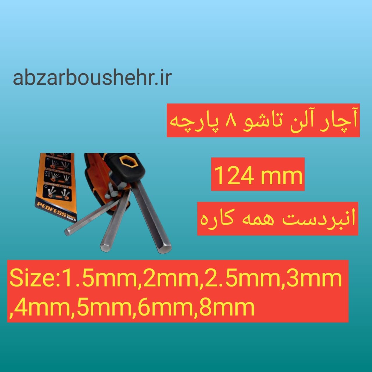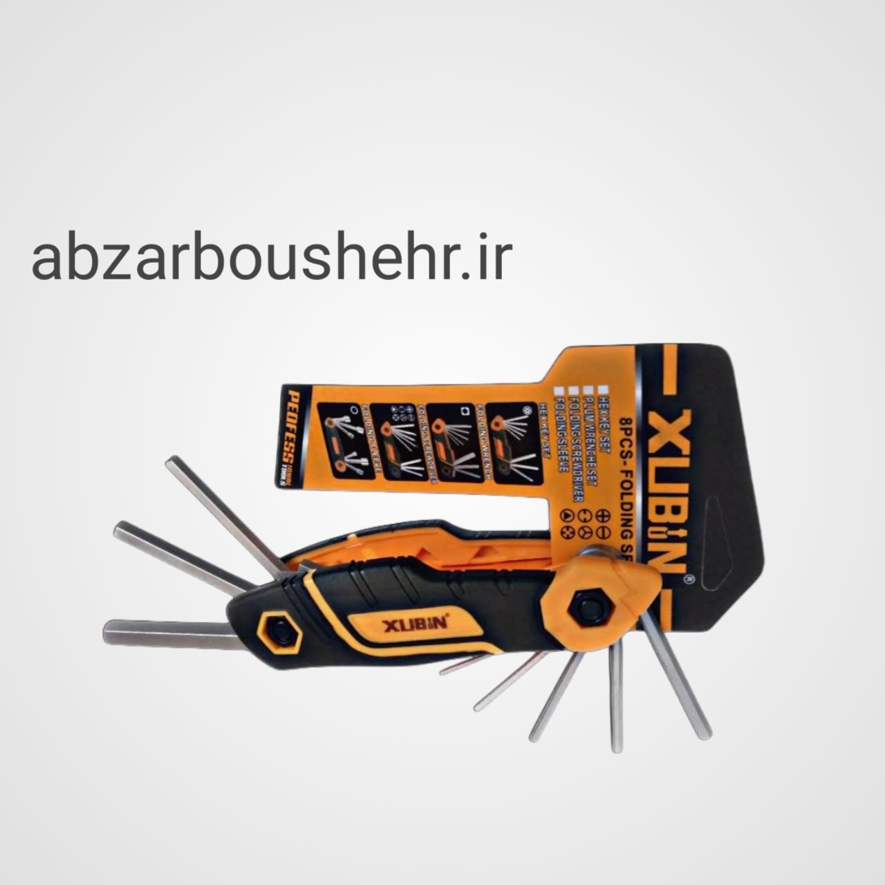 آچار آلن تاشو 8 سایزی 6 گوش ژوبین سایز 1.5 تا 8 میلیمتر